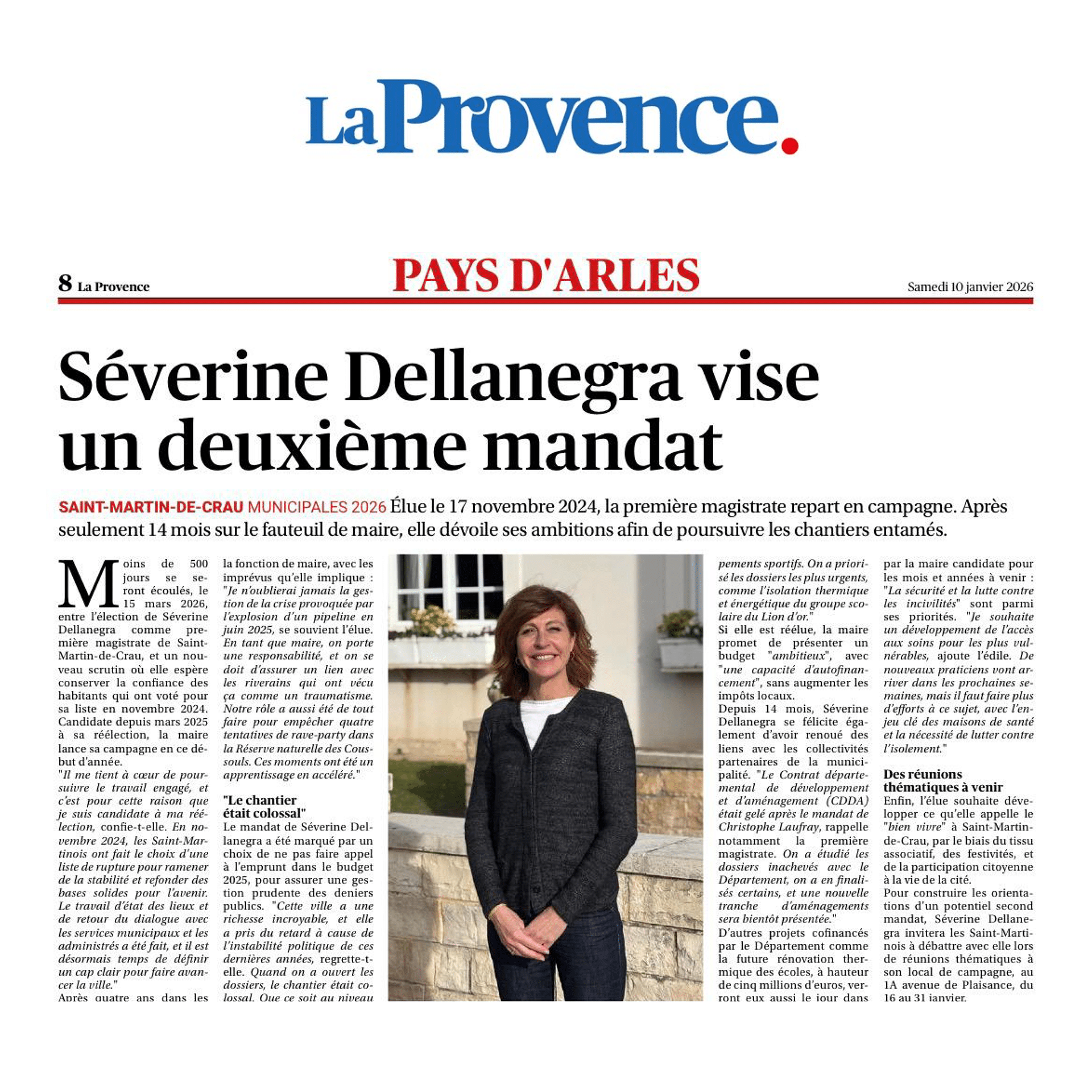 Parce que je crois profondément en notre commune et en son potentiel. Cette première année m’a confortée dans l’idée que Saint-Martin-de-Crau a besoin de continuité, de stabilité et d’une équipe qui connaît les dossiers. J’ai souhaité poursuivre mon engagement pour aller au bout des projets engagés et en lancer de nouveaux, toujours dans l’intérêt des habitants.